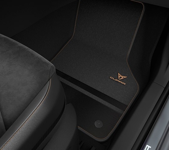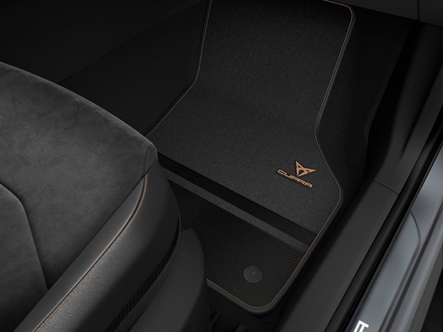 Offrez une protection supplémentaire au plancher de votre CUPRA Ateca sans faire de compromis en ce qui concerne le style avec des tapis de sol aspect fibre de carbone et un matériau Nubuck durable;rehaussés du logo CUPRA en cuivre pour mettre en valeur la personnalité de votre voiture.